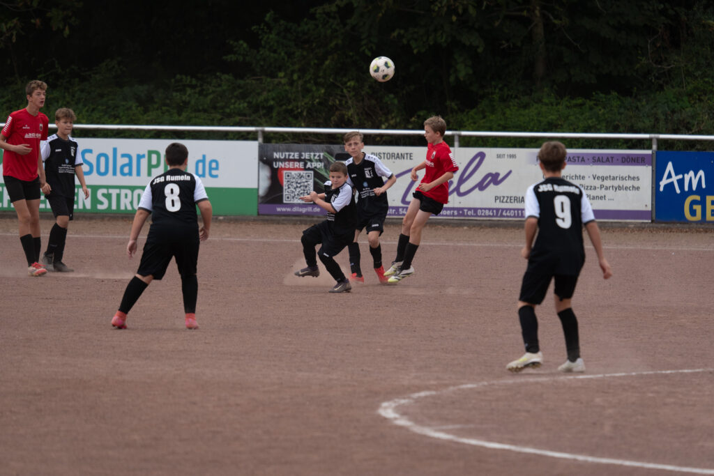 Die Jugendspielgemeinschaft Rumeln besteht aus C-Jugend-Spielern des FCR und des Rumelner TV. Gemeinsam wollen sie miteinander und voneinander lernen und einfach nur Spaß am Fußball haben. „Es ist toll, dass wir mit beiden Vereinen diese Lösung hinbekommen haben und wie sehr die Mannschaft in kürzester zeit zusammengefunden hat“, so das Trainergespann aus Sasch Faber, Alexander Witt und Stefan Edel vom RTV.