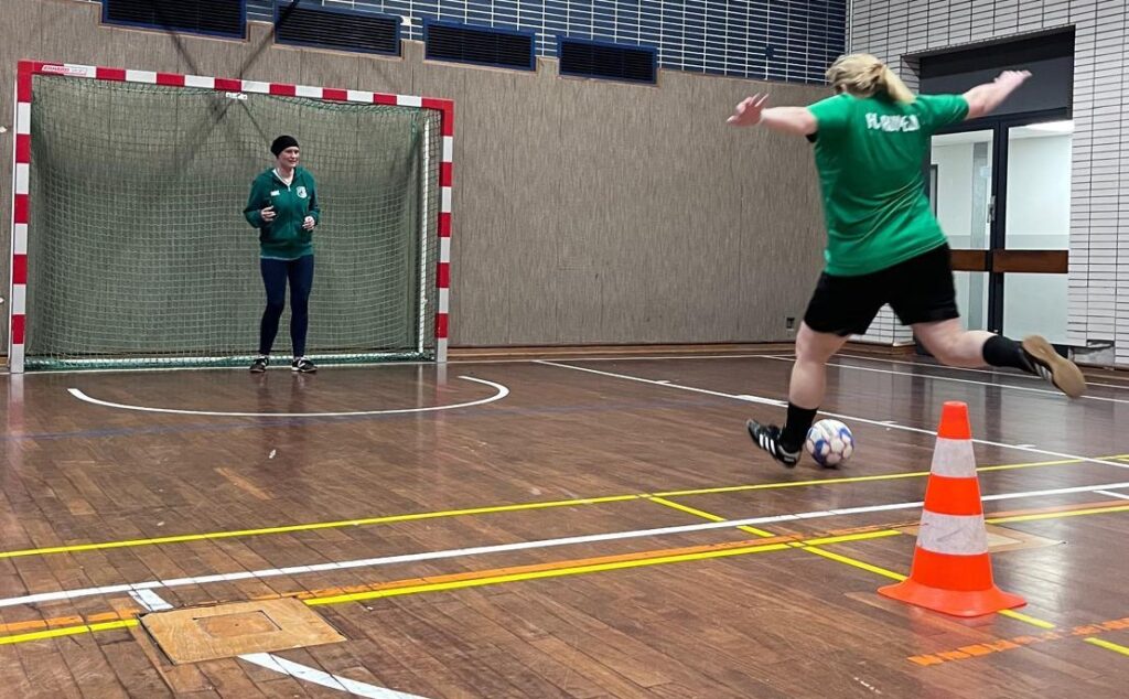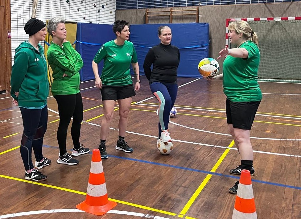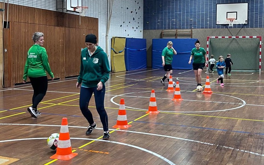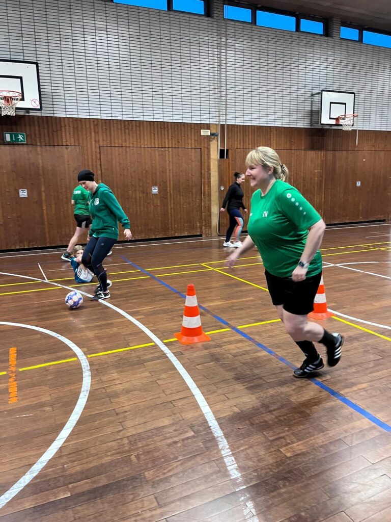 Nur bei den Kindern zuschauen reicht unseren FCR-Müttern nicht mehr – seit ein paar Wochen treten sie jetzt selber gegen den Ball. Was als Jux begann, entpuppt sich schnell als großer Spaß. Das Einzige, was sie noch gebrauchen können, sind weitere Mitspielerinnen, die sich am Ball fit halten möchten. „Es geht vor allem um den Spaß“, so Tine, die selber bereits in der Bezirksliga spielte und als Schiedsrichterin Partien der 2. Frauen-Bundesliga pfiff. „Allerdings sind einige von uns auch Jugend-Trainerinnen und darum machen wir schon richtiges Training – ganz ohne Ehrgeiz geht es dann doch nicht.“